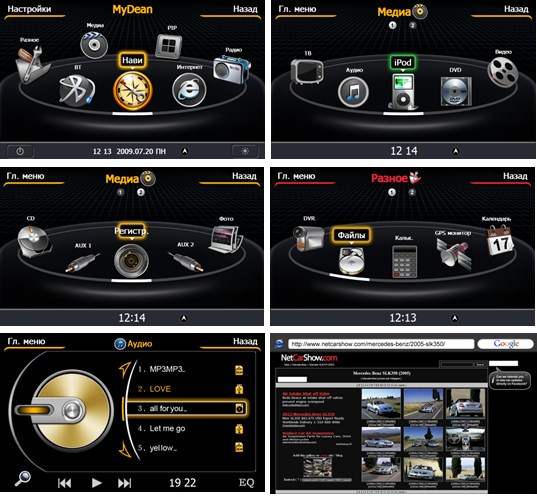 Меню штатных магнитол MyDean серии 1xxx